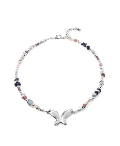 Sterling Silver Metal Alloy Beads Necklace With Central Butterfly
