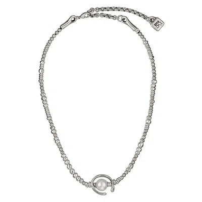 Sterling Silver Metal Alloy And Cultivated Pearl Links Necklace