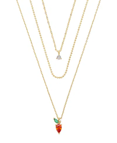 Cubic Zirconia Strawberry Pendant Layered Necklace Set