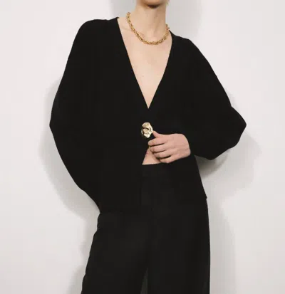 Long Sleeve V-neck Knitted Cardigan Sweater In Black