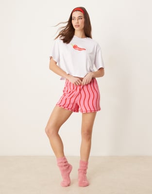 Cherry Printed Ribbed Pajama Shorts In Neutral