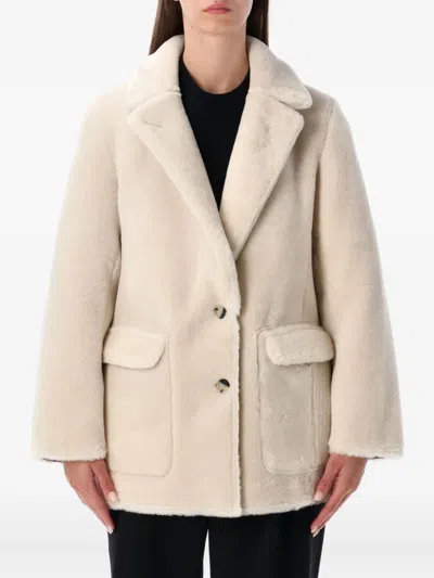 White Single-breasted Jacket With Classic Lapels In Faux Fur Woman In Neutral