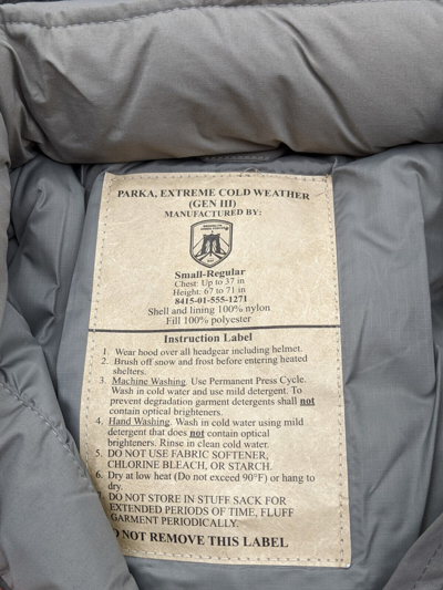 Pre-owned Gen 3 Lll Pcu Level 7 Primaloft Extreme Cold Weather Ecw Parka Jacket In Gray