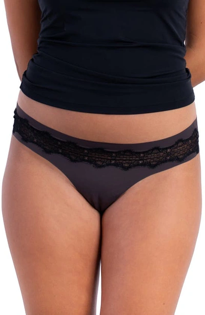 Vip Lace Trim Thong In Smoke Grey
