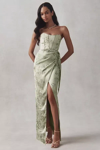 Vera Ruffle-strap Corset Side-slit Midi Dress In Brown