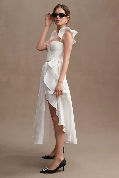 Vera Satin Ruffled-sleeve Bustier Midi Dress In White