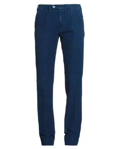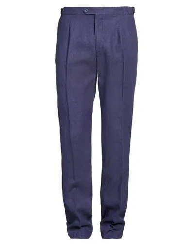 Man Pants Navy Size 38 Linen, Cotton In Blue