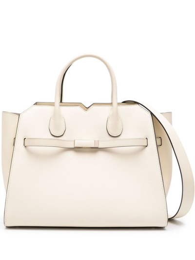 Medium Milano Leather Tote Bag In White