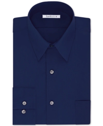 Men's Bigger Fit Wrinkle Free Poplin Solid Dress Shirt In Persian Blue