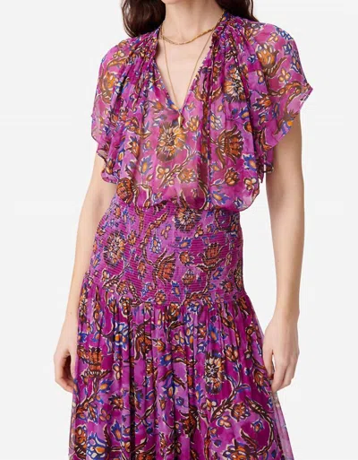 Nipoa Puffed Sleeves Top In Floral In Purple