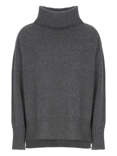 Cashmere Turtleneck Sweater Ribbed Trims In Gray