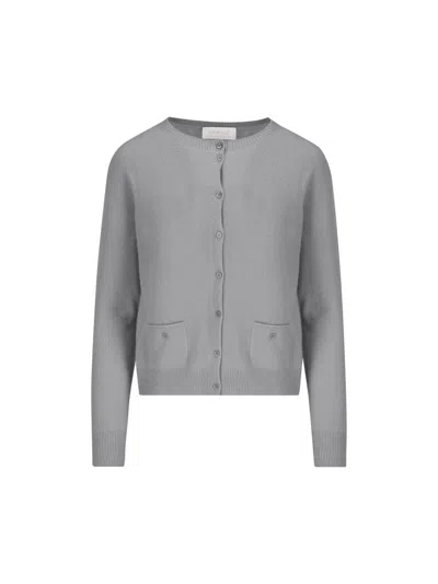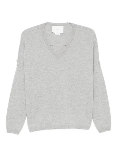 Relaxed-fit Gray Sweater With Pearl Button Details