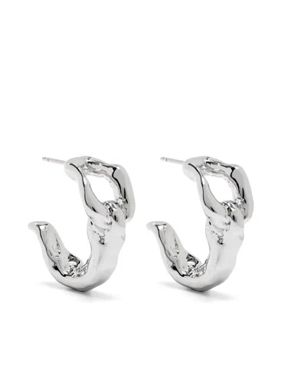 Asymmetric Rounded Hoop Earrings In Silver