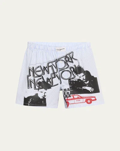 Stripe Printed Woven Boxers In Stripe Blue