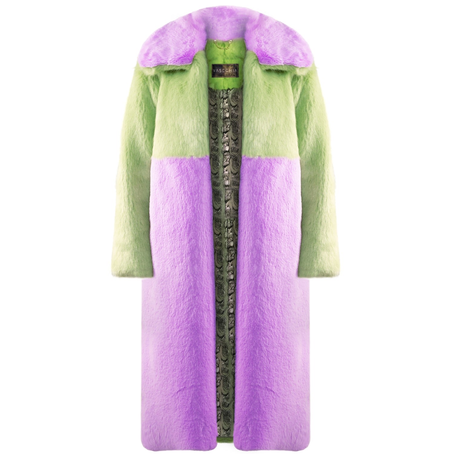 Women's Everly Vegan Faux Fur Green & Pink Long Coat In Multi