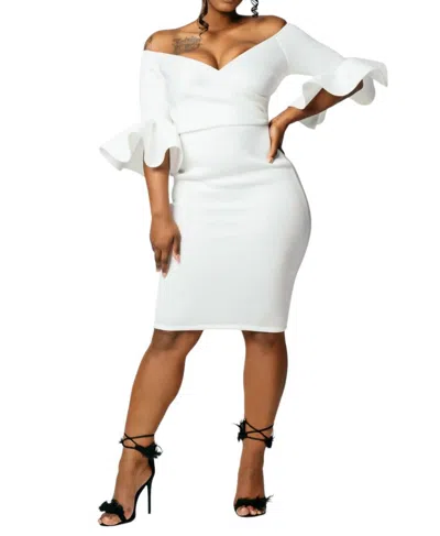 Off The Shoulder 3/4 Midi Dress In White
