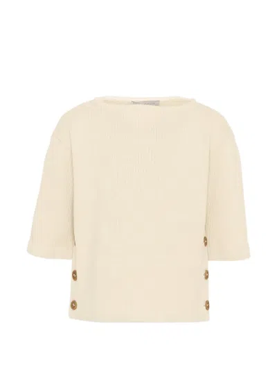 Kids' Button-detail Fine-ribbed T-shirt In Neutral