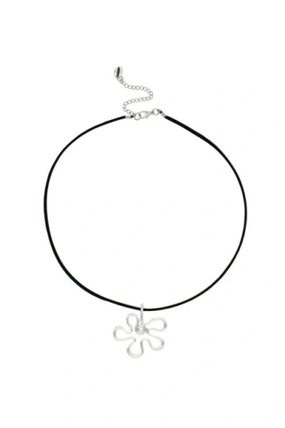 Suede Necklace With Ceramic Seashell Tie Charm In Black
