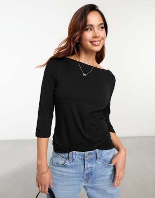 Three Quarter Length Sleeve Jersey Top In Black