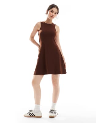 Mesh Slash Neck Sleeveless Mini Dress In Brown