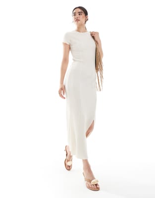 Plisse Jersey Maxi Dress With Asymmetric Hem In Green