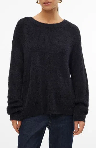 Eyelash Puff Sleeve Sweater In Black