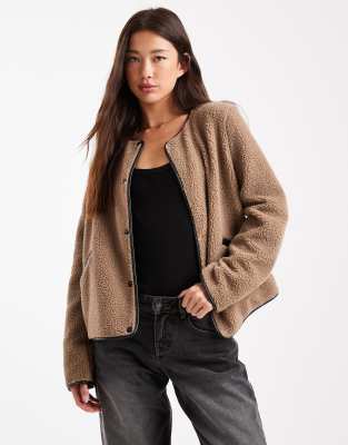 Lightweight Contrast Teddy Jacket In Brown