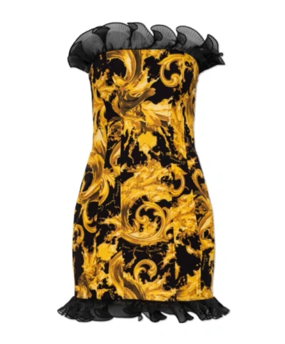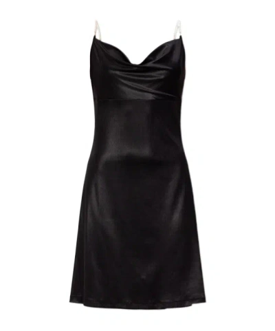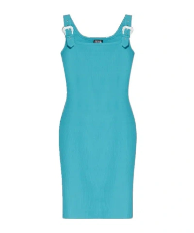 Buckle-detail Ribbed-knit Mini Dress In Black