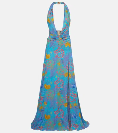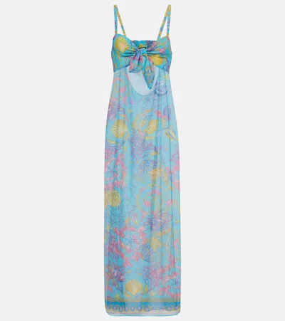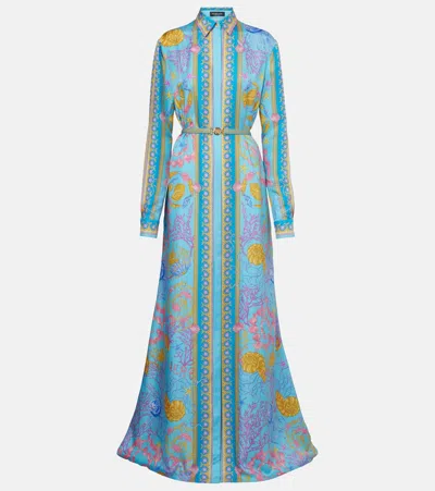 Underwater Barocco Silk Twill Maxi Dress In Blue