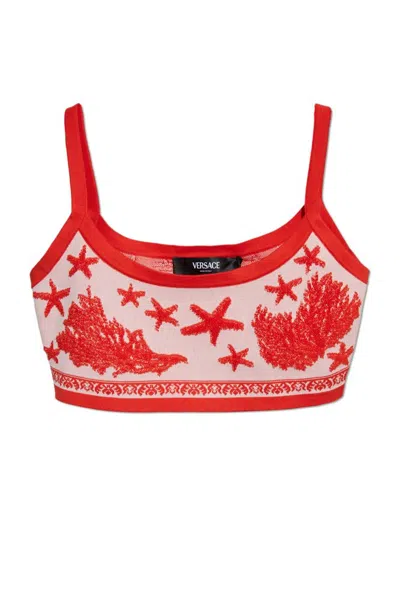 Tresor De La Mer Towel-stitch Jacquard Knit Crop Top In Multi