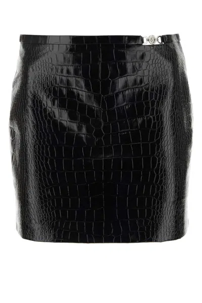 Waist-high Leather Skirt With Crocodile Motif In Black