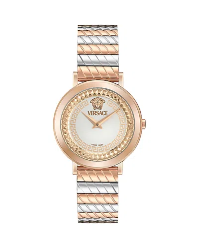 Greca Logo Mother-of-pearl Bracelet Watch, 33mm In Gold
