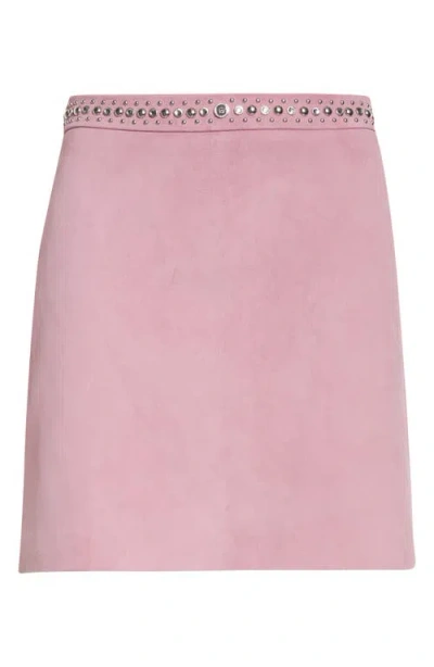 Studded Waist Suede Miniskirt In Pink