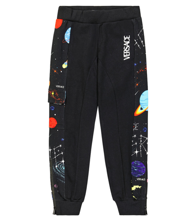 Kids' Printed Cotton Fleece Sweatpants In Black