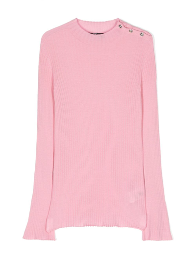 Kids' Ribbed-knit Side-button Jumper In Rosa
