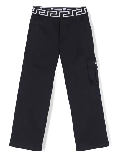 Kids' Greca Logo-waistband Cargo Trousers In Blue