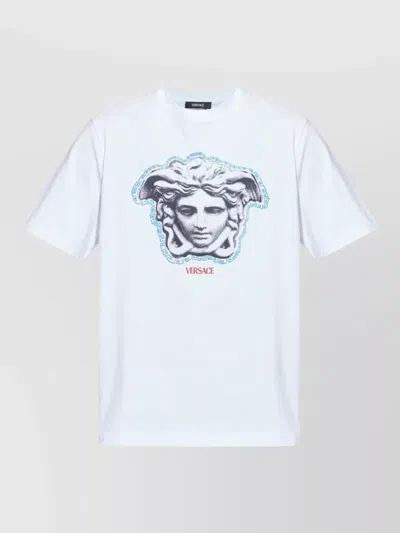 Short-sleeve White T-shirt With Medusa Graphic