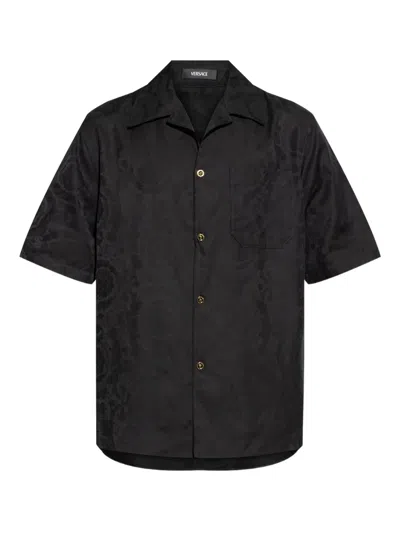 Camp-collar Logo-jacquard Cotton-poplin Shirt In Black