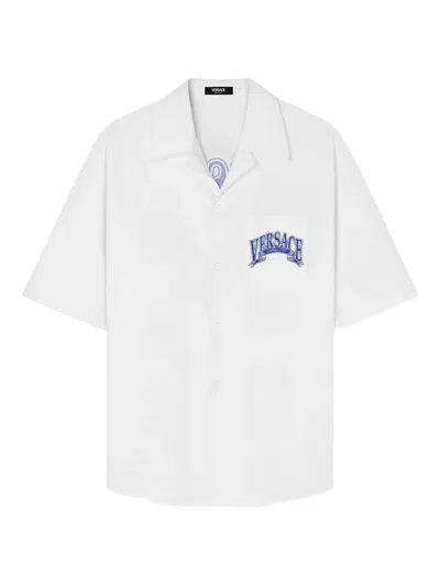 Medusa Logo Cotton Poplin Camp Shirt In White