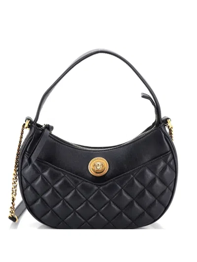 Pre-owned Medusa Half Moon Bag Quilted Leather Shoulder Bag In Black