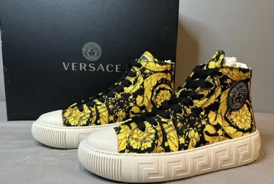 Pre-owned Greca Barocco High Top Sneakers Women's Size 38 (us 8) Authentic In Black & Gold