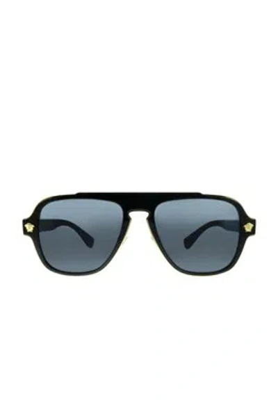 Pre-owned Medusa Charm Aviator Plastic Sunglasses With Grey Polarized Lens In In Black