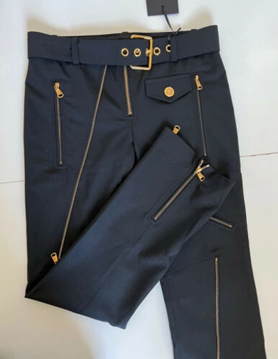 Pre-owned $1525 Women's Black Multi Zip Wool Pants 4 Us (38 Euro) A87140 It