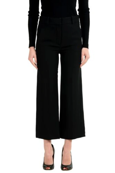Pre-owned Women's 100% Silk Black Cropped Wide Leg Pants Us 2 It 38