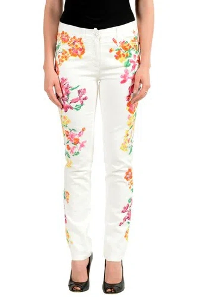 Pre-owned Women's Off White Coated Floral Print Five Pocket Jeans Sz 24 27