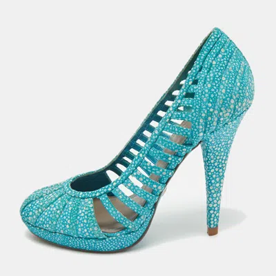 Pre-owned Blue/white Suede Platform Pumps Size 37