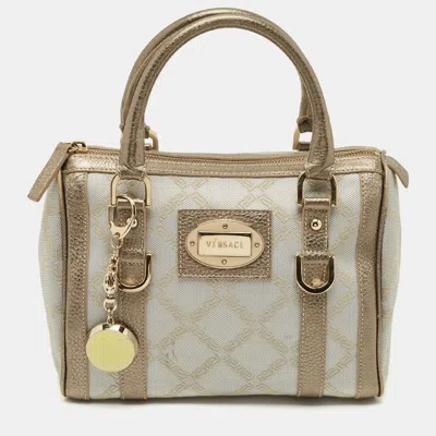 Pre-owned Grey/metallic Beige Jacquard Canvas And Leather Satchel In Gray