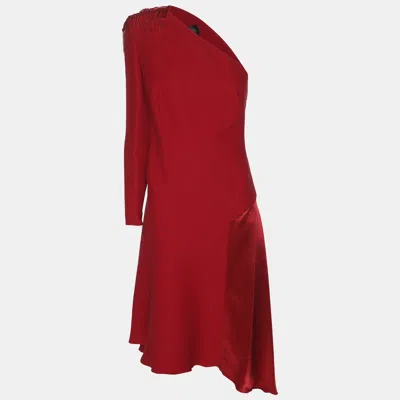 Pre-owned Red Silk Embellished One Off Shoulder Dress M