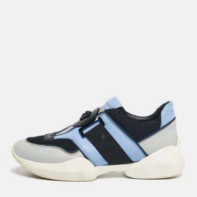 Pre-owned Tricolor Leather And Mesh Medusa Slip On Sneakers Size 38 In Blue
