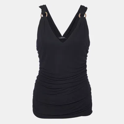 Pre-owned Black Crepe Ruched Sleeveless Top S